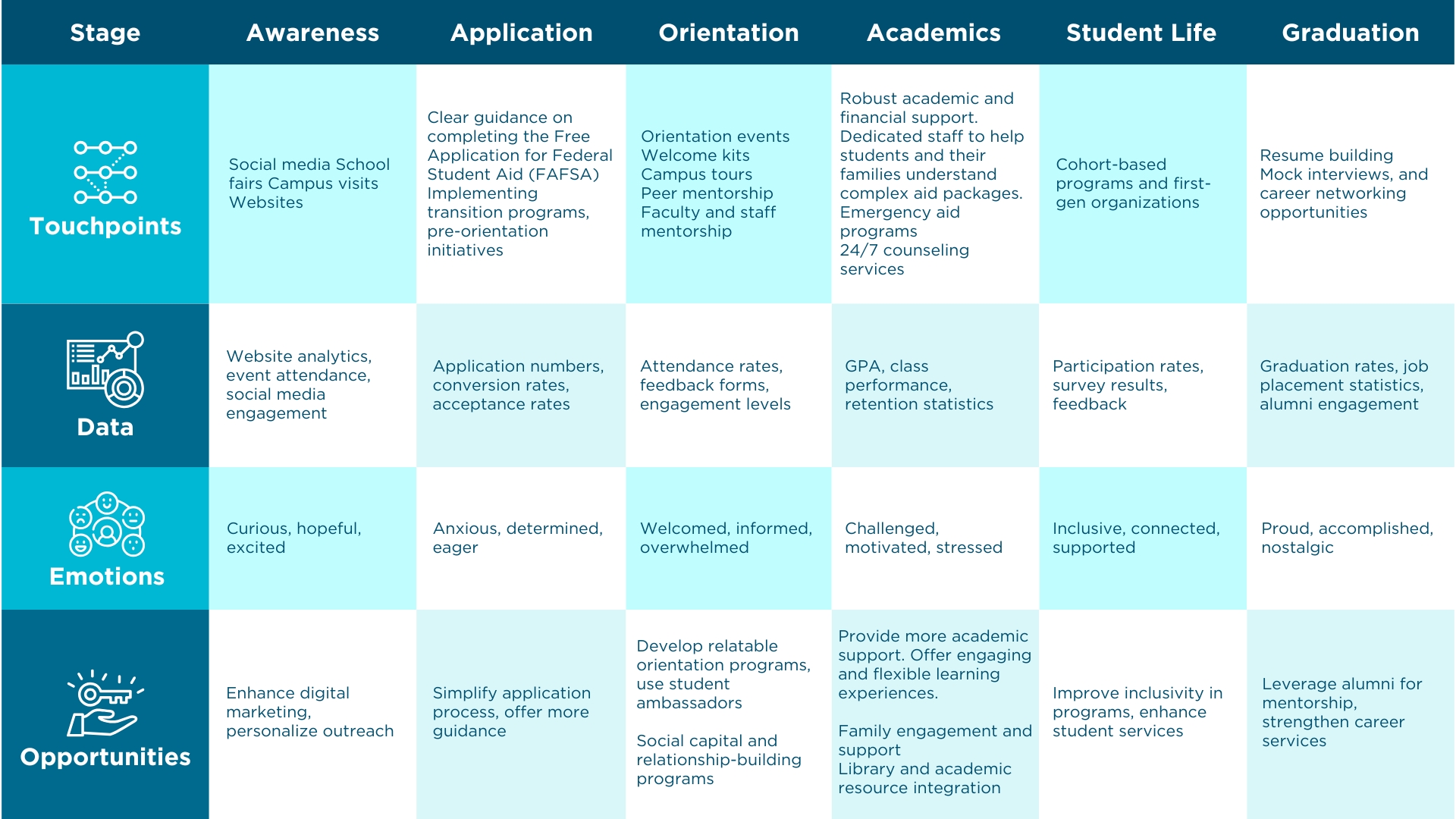 First-generation higher education students face a range of unique challenges in navigating the higher education system. As leaders in academic institutions, it is essential to acknowledge the multifaceted needs of this diverse student population and implement strategies that foster their success throughout the student life cycle. This article outlines effective strategies that institutions can implement to support first-generation students throughout their academic journey, from entry to graduation.